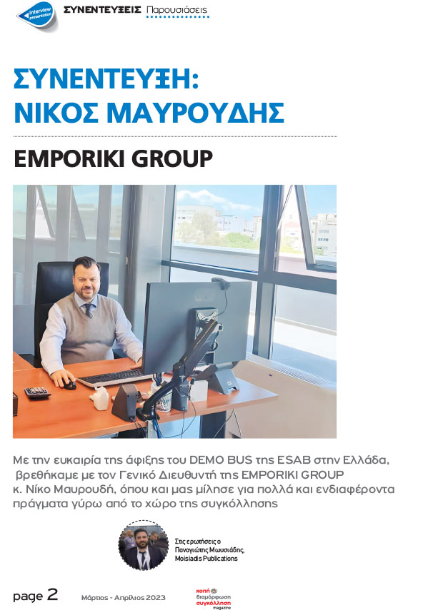 Mε την ευκαιρία της άφιξης του DEMO BUS της ESAB στην Ελλάδα, βρεθήκαμε με τον Γενικό Διευθυντή της EMPORIKI GROUP κ. Νίκο Μαυρουδή, όπου και μας μίλησε για πολλά και ενδιαφέροντα πράγματα γύρω από το χώρο της συγκόλλησης.